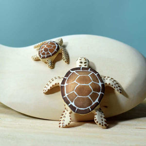 The sweet little Bumbu Toys Baby Brown Turtle features the most detailed handpainting in rich brown and white. Perfectly at home gliding along as a young sea turtle in an ocean small world set up, or perhaps in a freshwater lake scene alongside some fish and water birds.