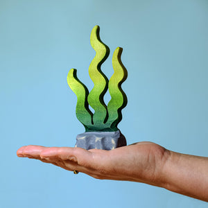 The Bumbu Toys Sugar Kelp Seaweed has been handpainted in a blended rich mid-green to light green, has three long waving arms, and comes complete with a rocky stand. Part of the Bumbu Toys Ocean range.