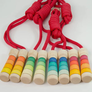 The Mader Skipping Rope for Older Children is beautiful and colourful, with wooden handles painted in Mader's signature stripes. A skipping rope is a classic outdoor toy that promotes hand-eye coordination, gross motor skills, and stamina.