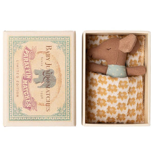 The Maileg Sleepy-Wakey Baby Mouse has a little trick! He might look like he's wide awake, but flip him over and you'll see he's actually fallen fast asleep. Our Baby Mouse wears a non-removable dusty blue onesie and is snuggled into knit bedding.