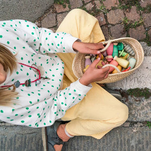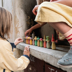 Grapat is well-known for their beautiful, hand-finished Nins, which are deliberately without gender and facial expression, allowing children to come up with their own stories and scenarios for their little friends. Made from natural timber with water-based colour stain, Grapat Nins feel beautiful in the hand and are fantastic for open-ended play.