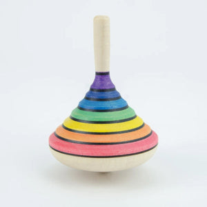 The Mader Rainbow Spinning Top is a lovely medium-sized top with a medium-level of spinning difficulty, perfect for children and adults who are ready to challenge themselves after mastering easier tops. It's been handpainted in seven vibrant rainbow stripes.