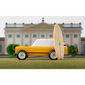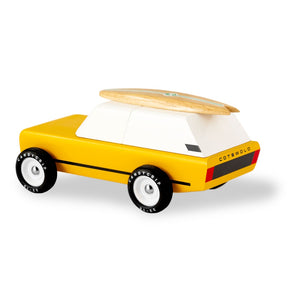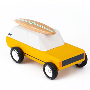 In a quest to overcome the rush for your afternoon tea – or tee? Must take the unpaved shortcut? Does your antiquing passion require copious amounts of comfortable travel? The Cotswold has you covered. The fancy toy vehicle for all connoisseurs. Comes with a magnetic surfboard and magnetic tow hook, allowing it to hitch our equally awesome Yellow Camper trailer.