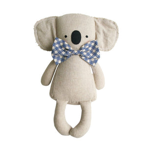 The Sitting Linen Koala by Alimrose has the most gorgeous, natural linen texture to his body. At 34cm tall, the gorgeous kenny koala is designed to sit nicely on your child's bed or shelf. He sports a lovely big blue checked bowtie.