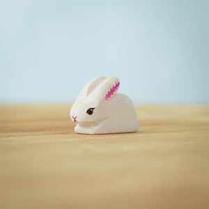 The Bumbu Toys White Perching Baby Rabbit is just having a little liedown after running round the field. This sweet little Bumbu Easter Bunny has been carefully handpainted in white with pretty pink ears and nose and bright black eyes.