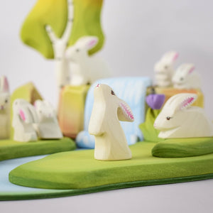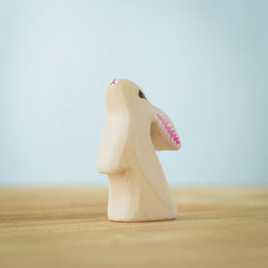 The Bumbu Toys White Curious Rabbit has her nose held high, sniffing the air to find the very best patch of thistles. This sweet little Bumbu Easter Bunny has been carefully handpainted in white with pretty pink ears and nose and bright black eyes.