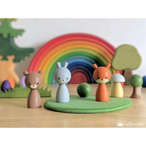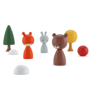 The name CLiCQUES comes from the tiny little click sound that the wooden parts make as the magnets embedded inside come together. Add more CLiCQUES Doll and Fauna Sets and a Garden Set or two, then use their cardboard houses to make a pretty village or forest scene complete with trees, mushrooms, bushes, and stones.