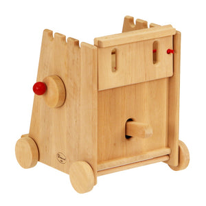 The Drewart Big Siege Tower is a true heirloom piece; simply beautiful to pass down to children and grandchildren. It includes a battering ram on a rope that hangs inside the tower and can be swung back and forth, a hand crank that when turned lowers the top front wall so that it becomes a platform for invaders to enter a castle, and a back wall that can be lifted up to access the inside of the tower and operate the battering ram.