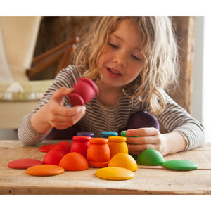 Encourage imaginative, free-form play with the absolutely beautiful Grapat 12 Mates. Your children will love using these rainbow coloured cups to hide little treasures, for stacking, for holding Nins, and more.