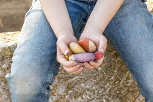 Made from natural timber with water-based colour stain, the eighteen Bugs feel beautiful in the hand and are fantastic for sensory play. Joguines Grapat toys are popularamongst Montessori and Waldorf minded parents, but also amongst parents who simply enjoy beautiful, natural toys that allow for educational, fun play.
