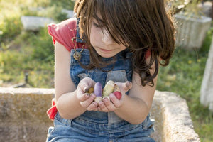 Grapat Bugs are perfect for nature play outdoors, but also indoors when combined with a foraging of leaves, twigs, and stones. The set comprises 18 insects, with an ant, a ladybird, and a slug each in six different colours: purple, blue, soft red, orange, golden yellow, and light yellow.