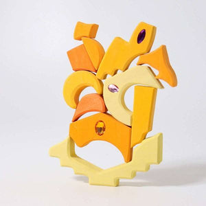 Quite possibly the most beautiful of all of Grimm's wooden block sets, Grimm's Sparkling Mandala Orient is also so versatile. Your child might use it as a jigsaw puzzle or to create delightful scenes and strange creatures.