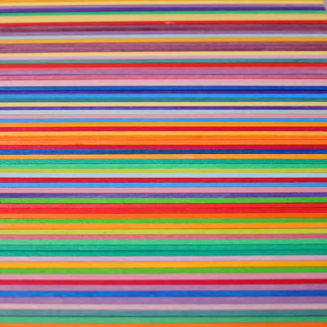 A truly versatile wooden building set, Grimm's Leonardo Sticks are the perfect add on to an existing set of blocks or are equally fascinating on their own. Comprising 100 colourful wooden planks in both bright and pastel rainbow colours, the sticks are satisfying to balance, and are light and flexible enough to create interesting arched shapes such as bridges and domes. Lay them flat to create colour-blocked surfaces for small world play or create unique three-dimensional structures.