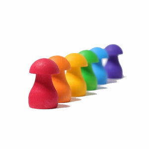 The Rainbow Mushrooms from Grimm's Spiel & Holz are made from beautiful maple wood, giving each a soft textural feel. They come in their own little box for storage. Each piece has been carefully hand-painted using non-toxic water-based dyes.