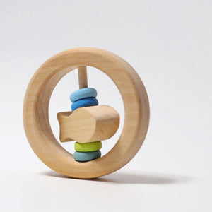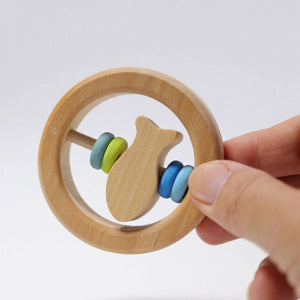 The beautiful timber Grimm's Circle Fish Rattle Zeppo is the perfect size for the smallest of hands. The brightly coloured beads in the middle will attract attention not only for their brilliant colours but also for the lovely soft sound they make as they move around along with the fish.