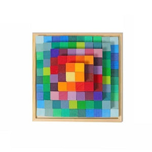 The beautiful Grimm's Spiel und Holz's Small Stepped Pyramid offers a total of 100 colourful building blocks of different lengths. Your child will be able to create the most amazing patterns and shapes in both 2D and 3D, as well as walls, towers, houses with furniture, castles, and more. The building blocks are also fantastic for counting and sorting games, even for practicing fractions. The Stepped Pyramid comes with its own base tray for easy storage and display of your gorgeous block set.