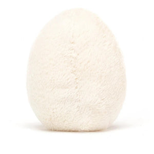 The Jellycat Amuseable Happy Boiled Egg has fluffy white fur, a yummy yellow yolk, and a super-cute smile. Keep an eye on this scamp with those cordy feet, or you might end up with a runny egg!Our delicious Jellycat Egg makes the perfect eggy gift at Easter!