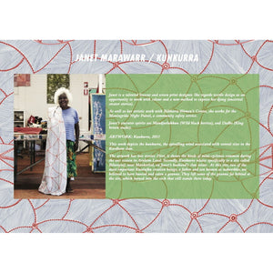 Janet is a talented linocut and screen print designer. She regards textile design as an opportunity to work with colour and a new method to express her djang (ancestral creator stories).
