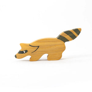 Our cheeky Raccoon by Mikheev features an iconic black masked face and stripey tail over golden tan fur. She's poking around the forest in search of a tasty feed.