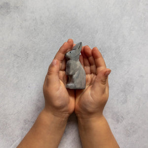 The little NOM Handcrafted Bunny Standing is one of a collection of four sweet Rabbits. The Bunny Standing has been handpainted in a rich charcoal black. She looks like she might have just heard something in the distance.
