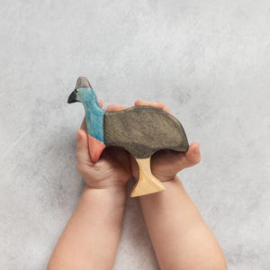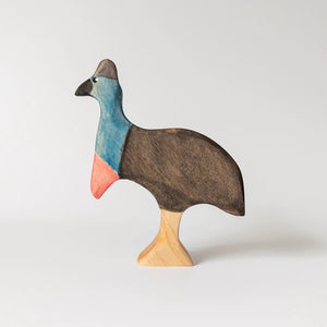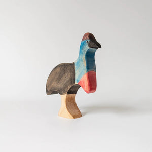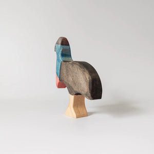 Isn't she majestic? The stunning NOM Handcrafted Cassowary is lovely and large, with stunning dark blue and red feathers contrasting against dark grey-brown. Our beautiful Cassowary is not to be messed with; she has a bone-hard casque - or helmet - on top of her head and will use it to defend her chicks and territory.