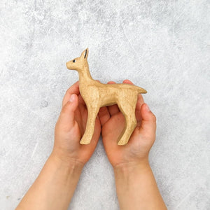 The NOM Handcrafted Reindeer Medium is a gentle soul, with a soft and attentive expression. It has a soft brown hue and the sweetest little flick of a tail. A wonderful addition to a small world play scene this Christmastime or include it as a deer doe in your forest small world play.