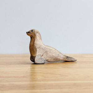 The sweet NOM Handcrafted Sea Lion has been carefully handpainted in a soft chocolate brown, with slightly darker flippers and tail. She has gently feathered whiskers and curious eyes.