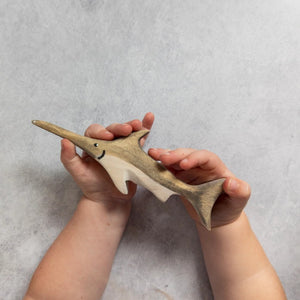 The rather handsome NOM Handcrafted Swordfish is of course sporting a rather long sword from his head! He's not looking for a fight though, just look at that friendly smile. Eryn has finished the Swordfish with greyish brown and white watercolours.