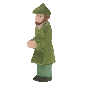 The Ostheimer Hunter figurine is dressed in a forest green jacket with matching hat and pants in a slightly different shade of green. He stands at 15cm tall and has a brown beard and hair.