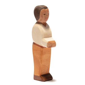 Ostheimer's Father II is a handsome wooden figurine depicting a man with dark skin and brown hair dressed in tan pants, cream shirt, and brown boots.