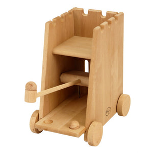 This beautiful and large Drewart Catapult is not only of the highest quality and instantly attractive to children, it really does work. Complete with two "rocks" (wooden balls) that sit neatly in little indentations until they are used, your child can draw back the arm of the catapult and let go, shooting the payload across the room.