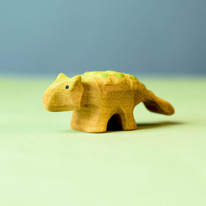 The Bumbu Toys Ankylosaurus Baby is a delicious shade of mustard with neon green spots down his back. He features a clubbed tail and a back covered with handcarved armour. This baby is sure to grow into a fierce dino one day!