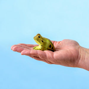 The Bumbu Toys Frog is an oversized toy designed to complement the Large Bumbu Flowers. He features a beautiful blend of handpainted grass and lime green, with gorgeous black splotches and eyes.