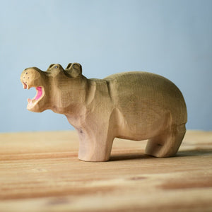 The rolypoly Bumbu Toys Hippo is plump and chunky, with gorgeous curves and a lovely big mouth that's held open wide to show a pink mouth and four strong teeth - watch your fingers!