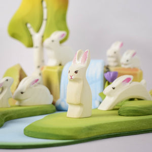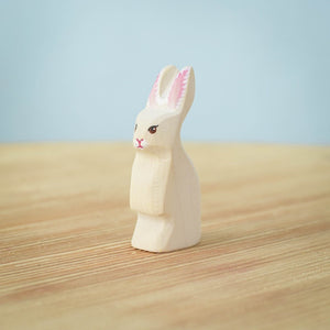 The Bumbu Toys White Listening Rabbit is being careful, ears held high to pick up any sounds of danger. This sweet little Bumbu Easter Bunny has been carefully handpainted in white with pretty pink ears and nose and bright black eyes.