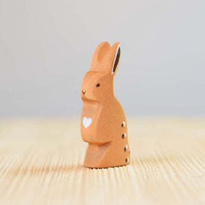 This sweet little Bumbu Toys Wooden Rabbit is on alert, checking its surroundings. The hand-painted detail is absolutely beautiful, with little spots on its back and a heart-shaped bib on its chest.