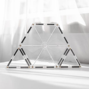 The brand new Connetix Tiles 34 Piece Clear Pack has been long-awaited by many in the Connetix community. Add the beautiful transparent shapes to your existing Pastel and Rainbow Connetix collection to create ice palaces, windows, skyscapes, frozen landscapes, and more. The Clear Pack contains a wide variety of Connetix's recognisable shapes, including all three types of triangle, both sizes of square, gorgeous hexagons, and rectangles.