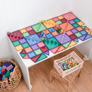 The Connetix 64 Piece Pastel Starter Pack is a wonderful set for a home, with plenty of pieces to build varied structures. Be warned though - Connetix Tiles are addictive and you will want more!