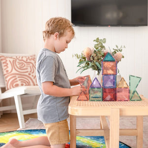 Connetix Tiles contribute to the development of fine motor skills, spatial awareness, identification of common shapes, and hand-eye coordination - and they're simply beautiful. Place some in the sun to see the gorgeous reflections your Connetix Tiles shadow onto the floor.