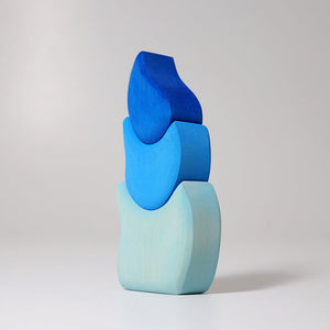 Grimm's Drop Tower delivers you beautiful blues, handpainted patterns, and organic shapes. The pieces curve into each other to form a gorgeously curvy tower and can also be used in combination with other Grimm's toys to create villages or add curves, doors, and windows.