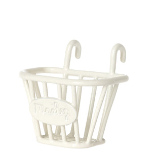 The Maileg Basket for Mouse Tricycle is a sweet little metal basket in white that fits nicely onto the Mouse Tricycles, so they can easily cycle home with their baguettes, peaches, and croissants. Mice and tricycles available separately.