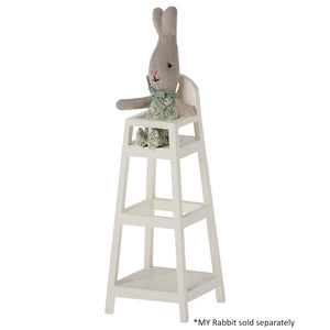 The sweet off-white Maileg My High Chair sits lovely and tall so your little friend can sit up at the kitchen bench or dining table with the grown-ups. It fits both Maileg My Rabbits and Baby Mice.