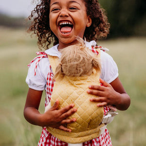 The Olli Ella Dinkum Doll Quilted Carrier in Honey is the perfect way to keep your Dinkum Dolls close and cozy. With its soft quilted design and muted honey mustard colour, this carrier brings warmth to every adventure. Adjustable straps and a comfy interior make it an ideal choice for carrying your dolls, wherever their imaginations take them!