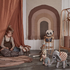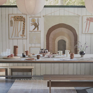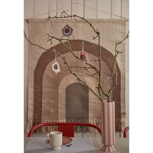 The beautiful new Choko colourway in OYOY's iconic Follow the Rainbow Wall Rug features rich, earthy tones in rust, peachy nude, camel, chocolate, and beige.  With its lovely woolen texture, stylised rainbow, and grand scale, this striking wall hanging is going to make a statement.