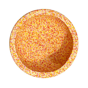 • One Stapelstein Stacking Stone in Super Warm, a dappled blend of yellows, pinks, orange, and red