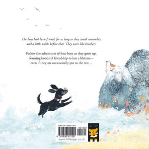 Each boy has his own skills and they support and love each other. Their friendship ebbs and flows as they each branch out to explore their individuality, particularly when they reach their teens, but the boys' friendship is the one constant they can all turn to through their lives. The book ends with the boys grown into men, some in relationships and some with children of their own, playing at the same beach they enjoyed as kids.
