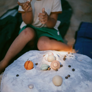The most beautiful outer space small world play set from the clever makers at Grapat. Dear Universe includes over 40 pieces, including colourful planets, dainty stars, and shimmering moons. The planets work as a lovely addition to Grapat's 7 Moons Weekly Calendar. The daysof the week were originally named after planets and children might like to match them to the planets from Dear Universe.