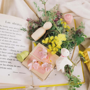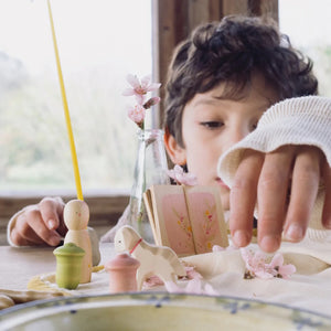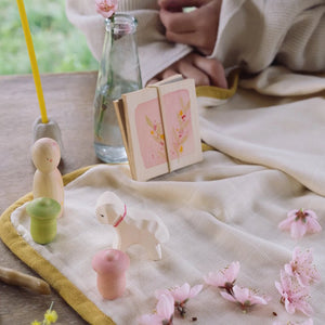 Children will delight in preserving their favourite tiny flowers using the flower press, and creating a sweet little small world play scene using the Nin, Lamb, and Tulips. They can create a seasonal display on their bedside table or playroom shelf to celebrate Spring.