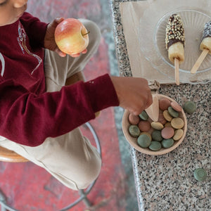 Grapat Yummy pieces can also be used as Mandala pieces, currency in pretend play, for counting and sorting, as flowers or colourful bushes in small world play, and so much more.