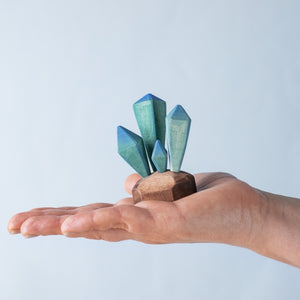 The Bumbu Toys Blue Crystals have the most beautiful form. There are four elongated diamonds in a rich blue mounted on a brown base. The Crystals make a wonderful landscaping piece in a dragon, dinosaur, gnome, or fairy small world play scene.